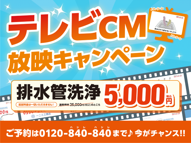 この度より多くの方に当社を知っていただくため、排水管洗浄サービスに関する テレビCMを放映いたします。